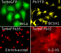 Белки группы TurboColors были протестированы в качестве партнеров слияния с сигналами внутриклеточной локализации и с рядом олигомеризующихся клеточных белков, а так же при создании стабильно трансфецированных клеточных линий.